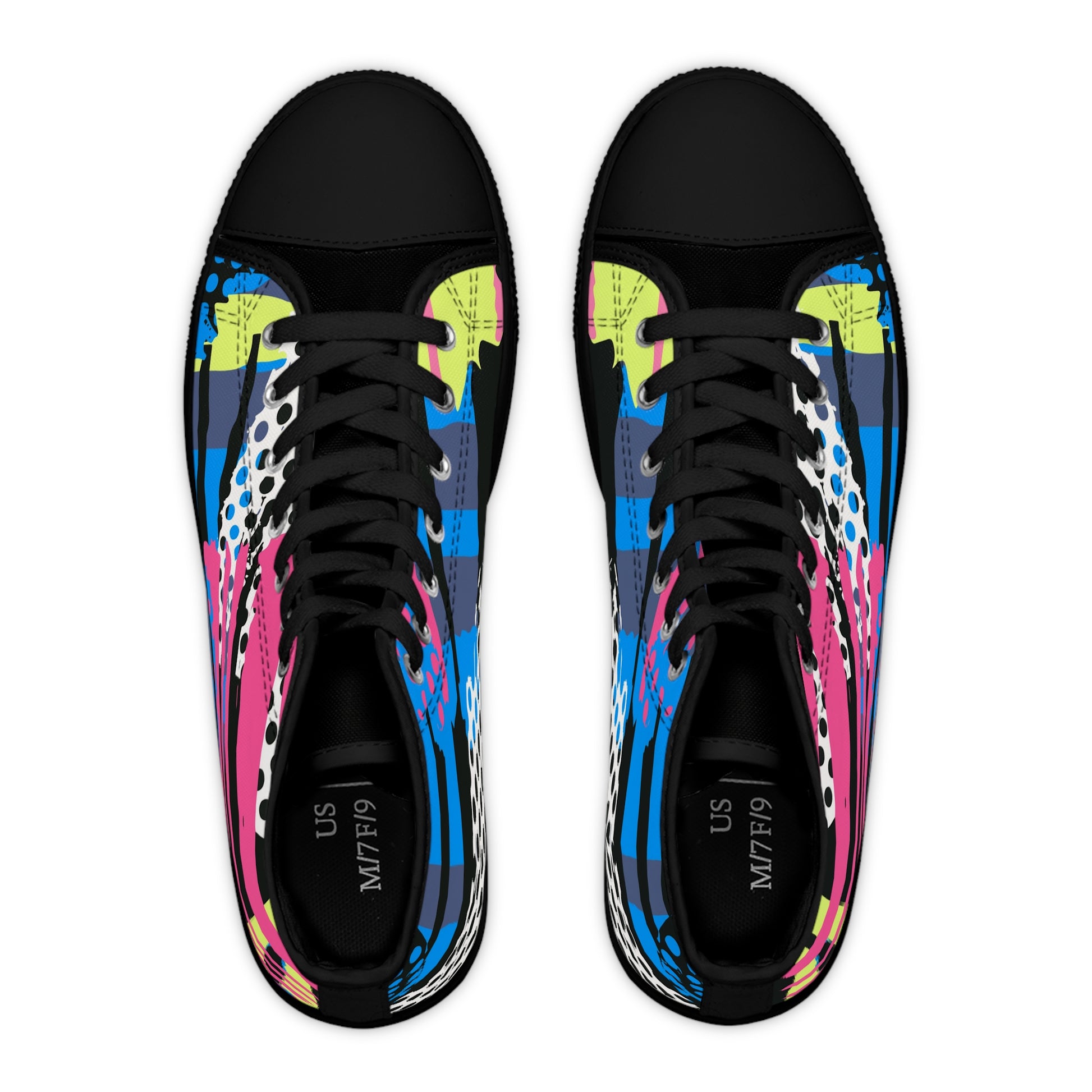 Our high-top sneakers feature a variety of eye-catching modern art designs to stimulate the senses and captivate the imagination. DFT printed for enhanced sharpness and vivid coloring.